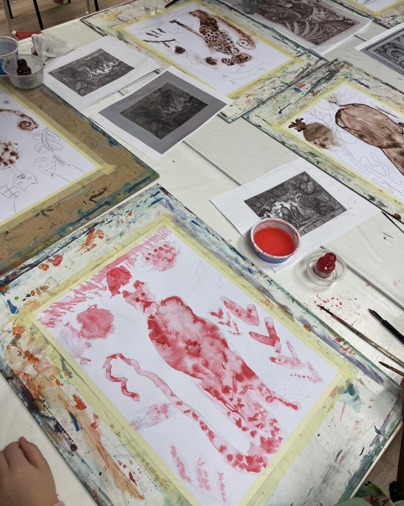 - Šelmy a tvory tušom: V ateliéri na Trávnikoch sa pod vedením Kataríny Končovej pracovalo s tušom. Žiaci sa pri maľbe šeliem a fantastických tvorov inšpirovali detailnou tvorbou známeho ilustrátora Petra Kľúčika.